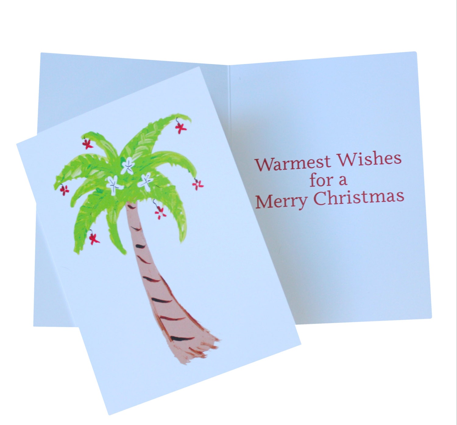Christmas Tree Palm Trees. Native to the Philippines, Christmas palms thrive in tropical climates, including in Hawaii and the southern half of Florida. So named for the red bunches of berry-like fruit that ripen in late fall or early winter, this tropical tree will spend the holidays looking as if it's been decked out for Santa and his reindeer with some lights for décor.
