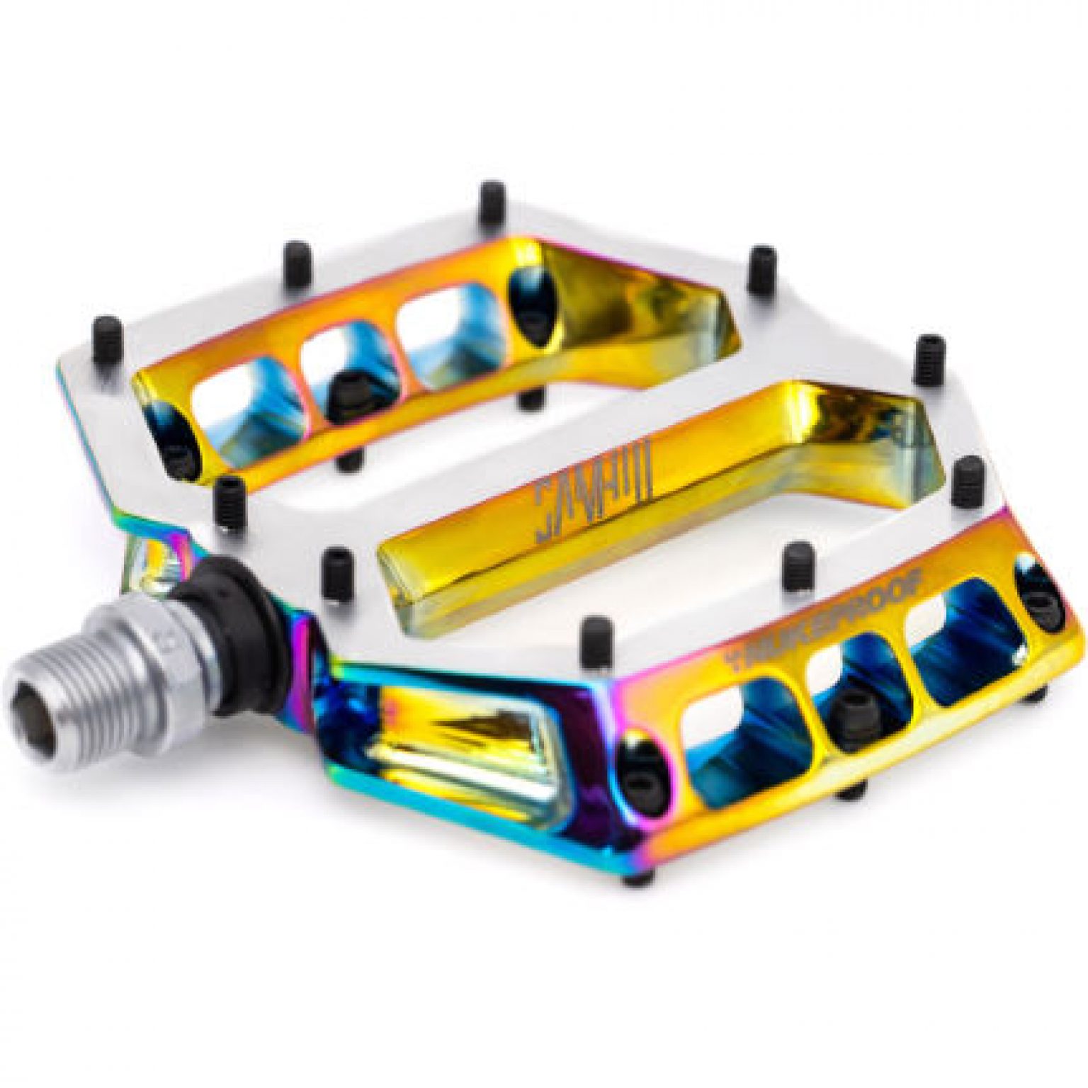 These pedals are in Nukeproof's special edition oil slick colour Sam Hill MTB Pedals Developed by mountain bike legend Sam Hill and long-time mechanic Jacy Schumilak, these MTB pedals are engineered for maximum performance Nukeproof has also put these through a forging and CNC-machining process, which means you'll benefit from their amazing durability without adding any unnecessary weight to your MTB